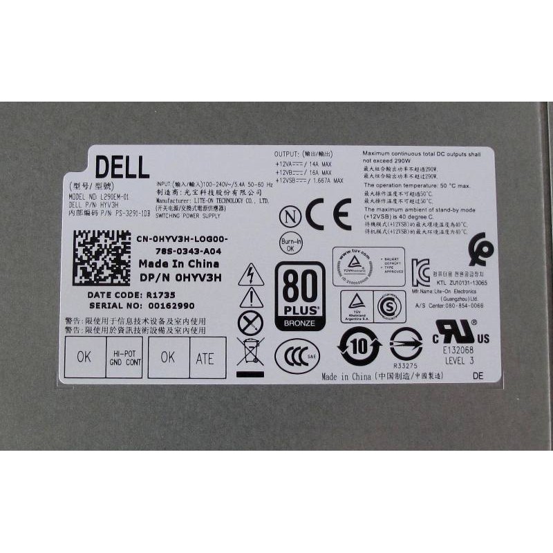 PSU 290W DELL 0HYV3H Model L290EM-01
