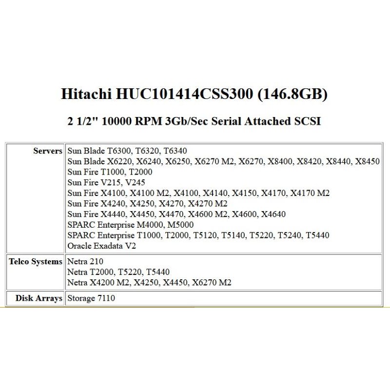 HDD 146GB 10K SAS 2,5'' SUN 390-0377 SUN 540-7152, Hitachi HUC101414CSS300 PN 0B22382