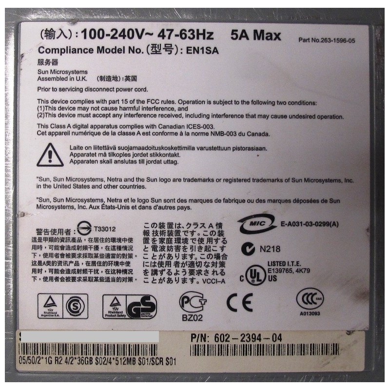 Serveur SunFire V210 Bi-Pro 1.064GHz USIIIi - 8 GB RAM - 36GB SCSI