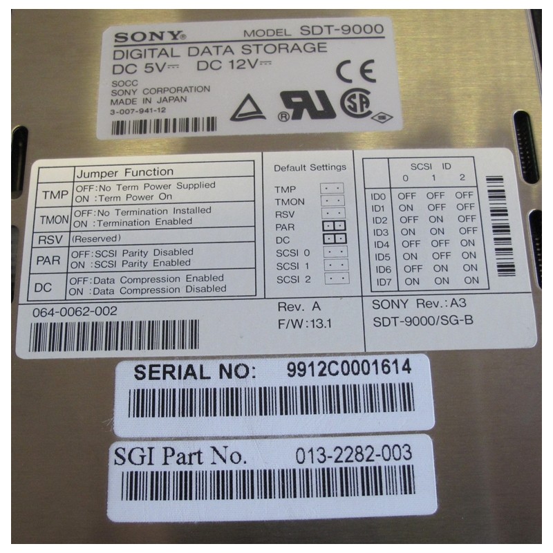 SGI DAT DDS3 DAT4mm SONY SDT-9000 Genuine 013-2282-003 Tape Drive incl. SCSI Adapter PCB ASM-59465-020, 030-1364-001