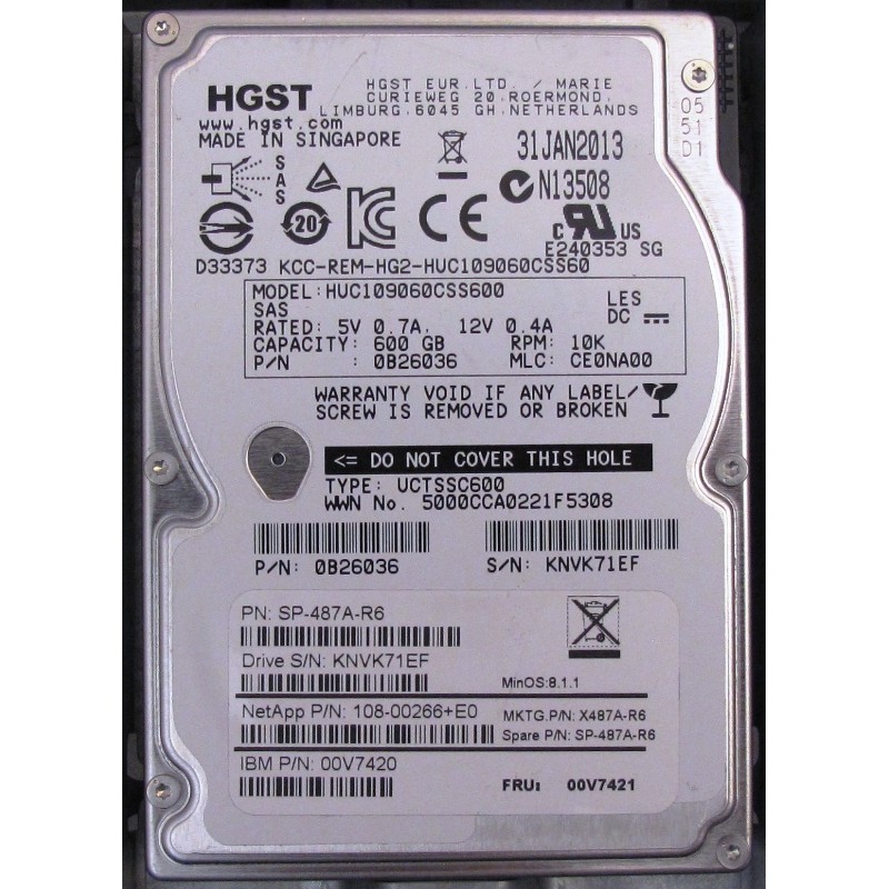 Disque 600Gb 10K SAS 2.5 NetApp SP-487A-R6 p/n 108-00266+E0 - Hitachi HUC109060CSS600 0B26036