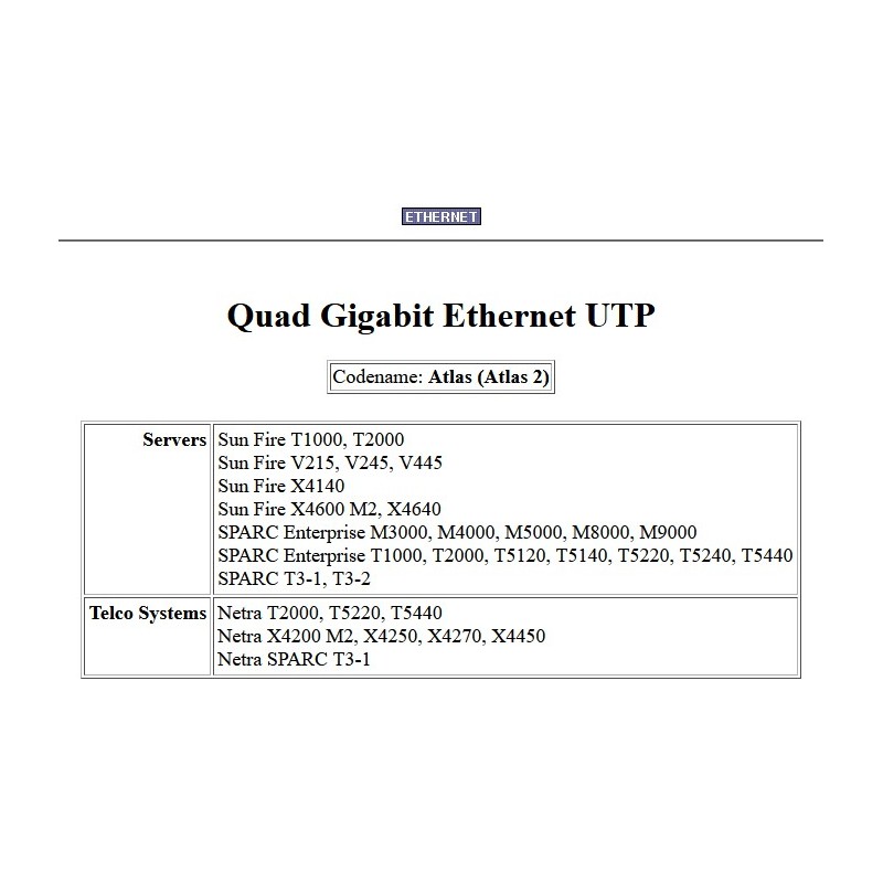 SUN 501-7606 Carte réseau Quad Gigabit Ethernet UTP PCIe x8 PCI Express