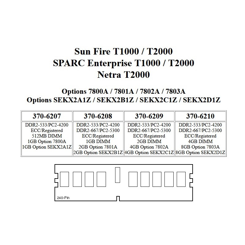 SUN 370-6208 Mémoire 1GB DDR2 DIMM DDR2-667/PC2-5300 ECC Registered