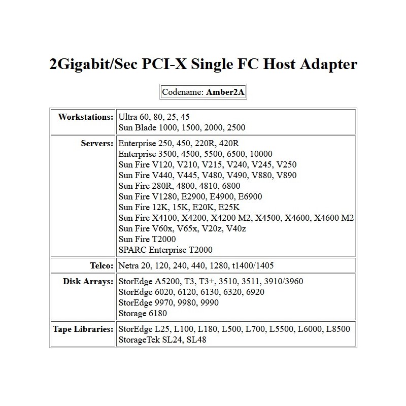 Carte fibre SUN 375-3383-01 2Gb PCI-X Single FC Host Adapter