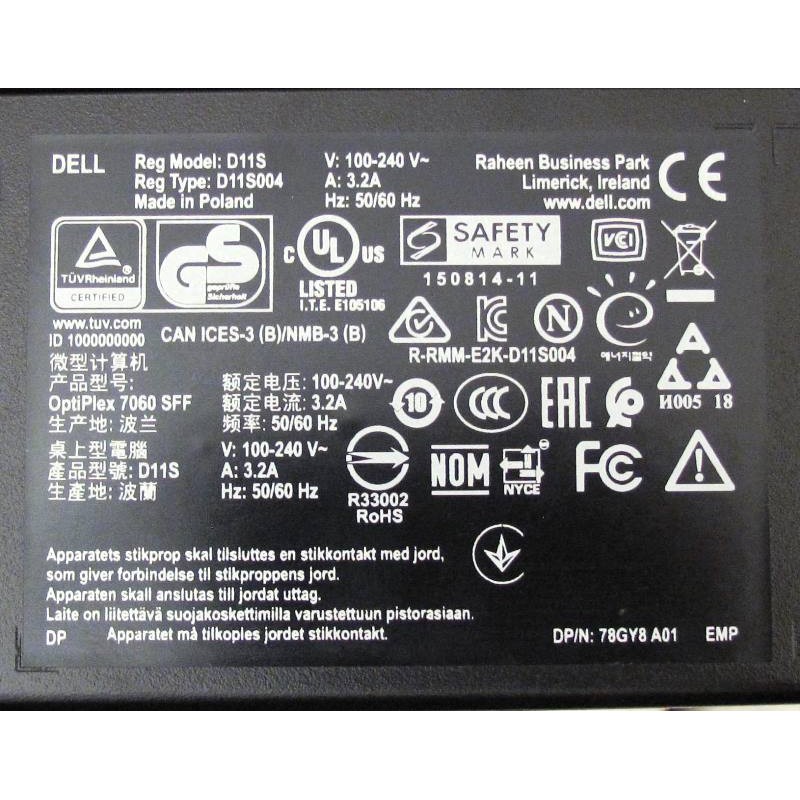 UC Dell Optiplex 7060 SFF Mod D11S DP/N 78GY8 A01